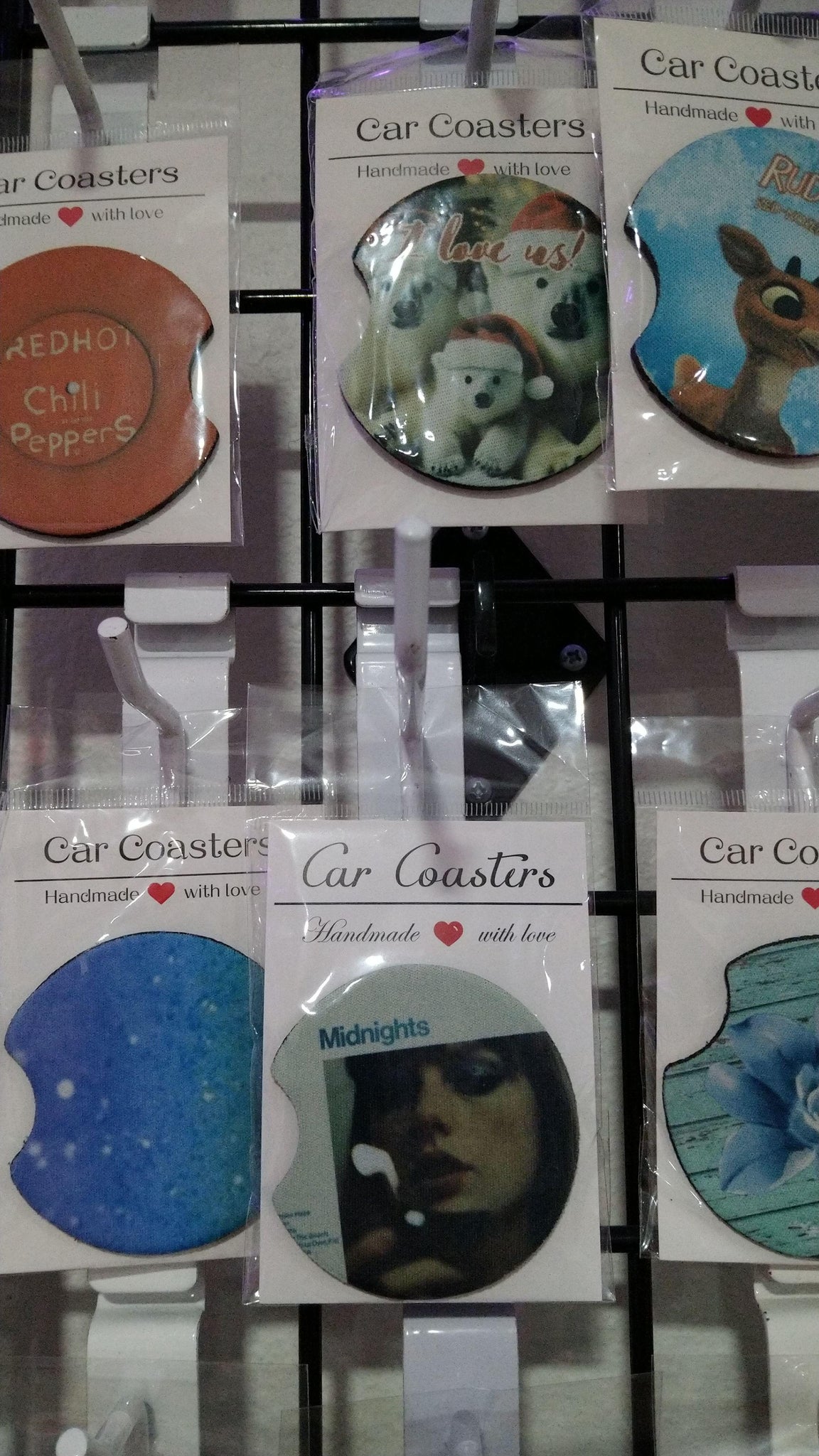 All of the car coasters are single sided with a neoprene backing. The price reflects sublimating on the one side and there will be no additional charge for needing to add or remove backgrounds and text. You are welcome to use a different image for each car coaster.